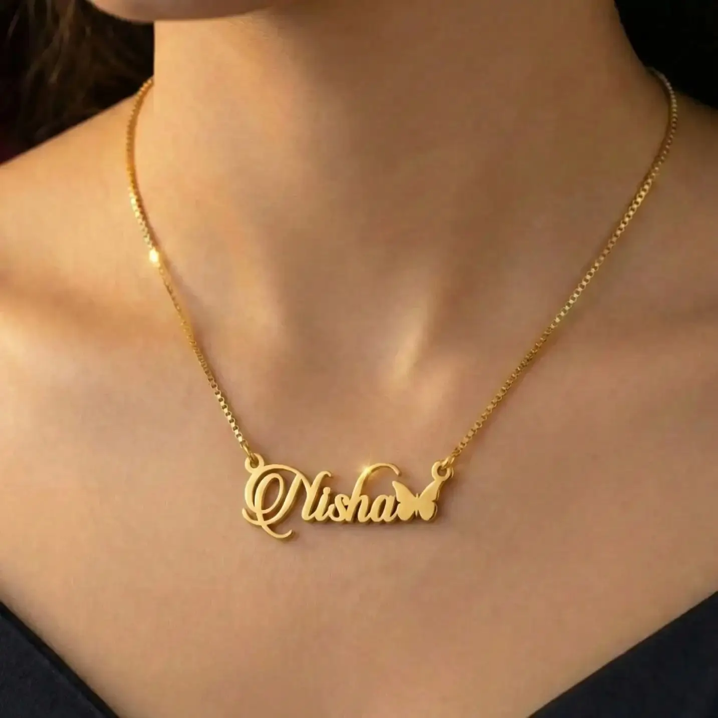 Product: Gold-Plated Brass Name Necklace with Butterfly Design