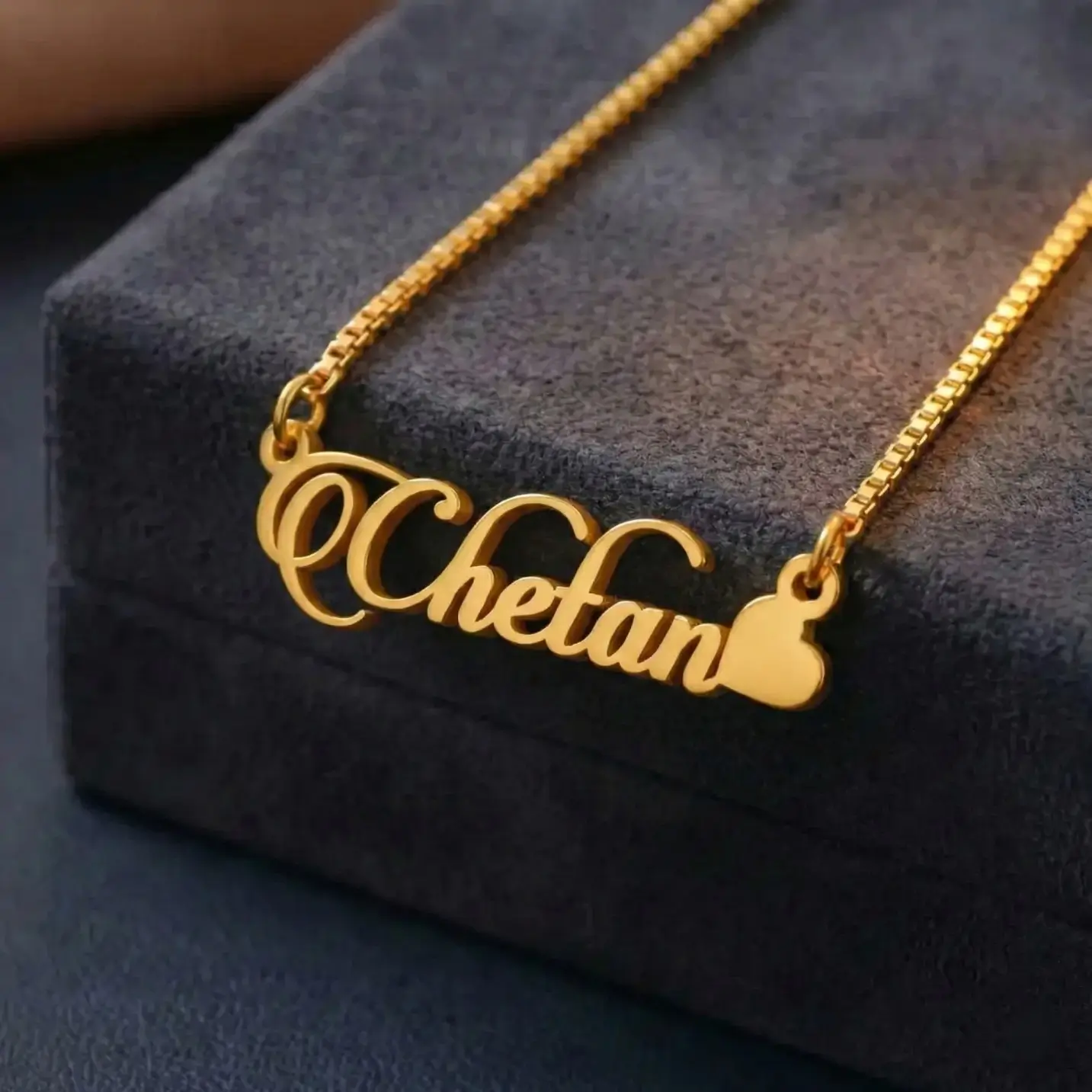 The Candlescript Heart Style Name Necklace is a poetic masterpiece that celebrates the unique beauty of your name. The delicate heart-shaped nameplate is adorned with flowing candlescript letters that dance and swirl like a love letter to your identity.