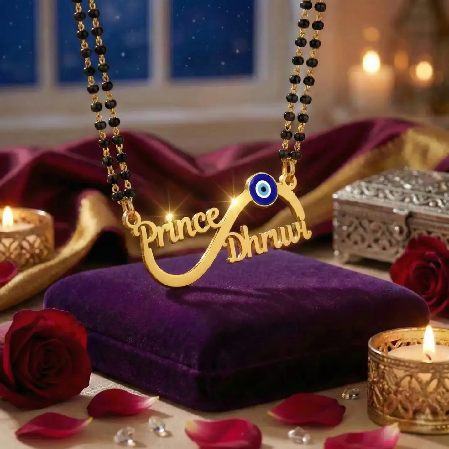 Infinity Evil Eye Couple Name Necklace