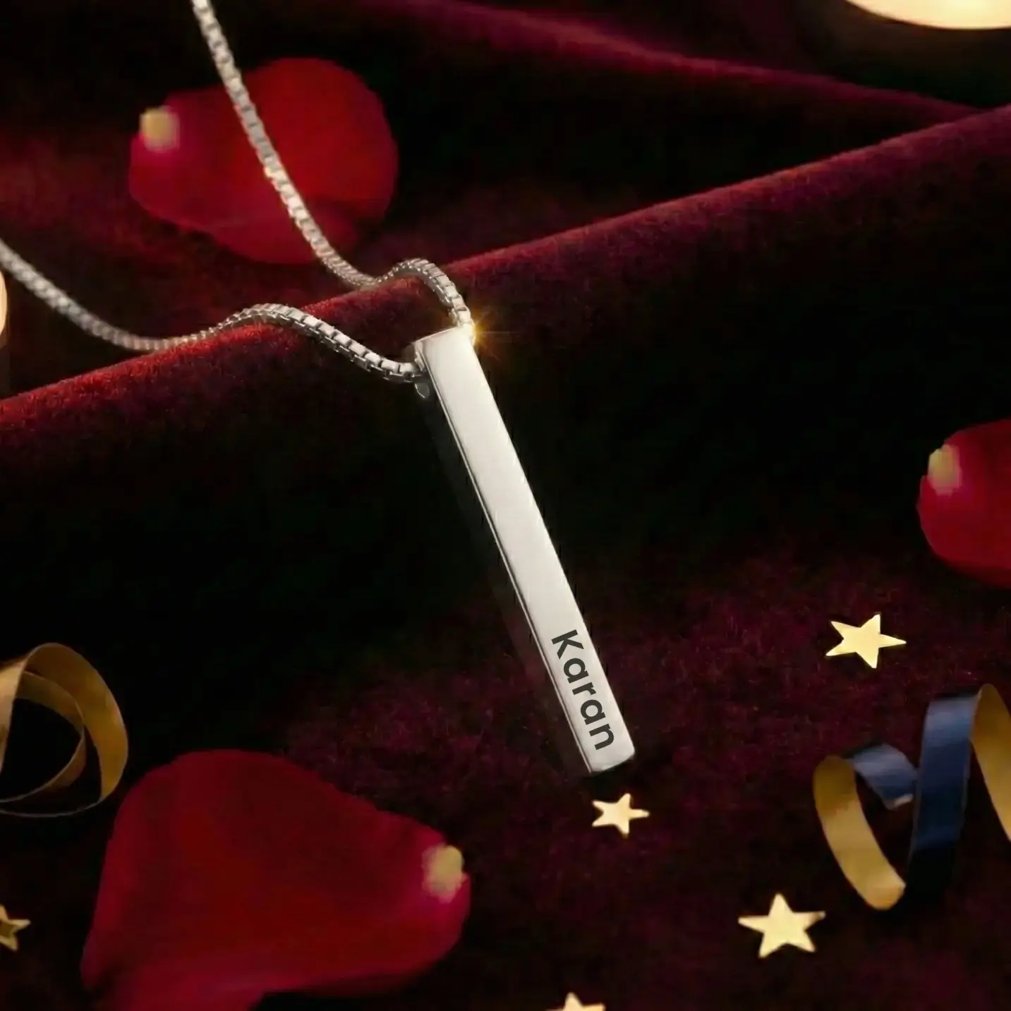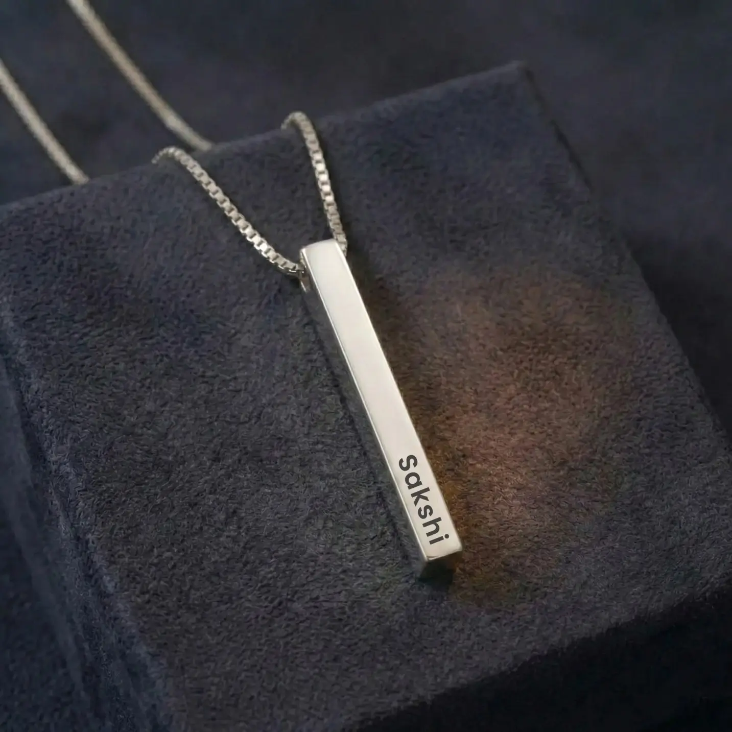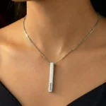 The Elegant Silver Plated Personalized 3D Bar Pendant is a stunning piece of jewelry that combines style and sentimentality. Crafted with intricate attention to detail, this pendant features a sleek cuboid shape, exuding a modern and sophisticated charm.